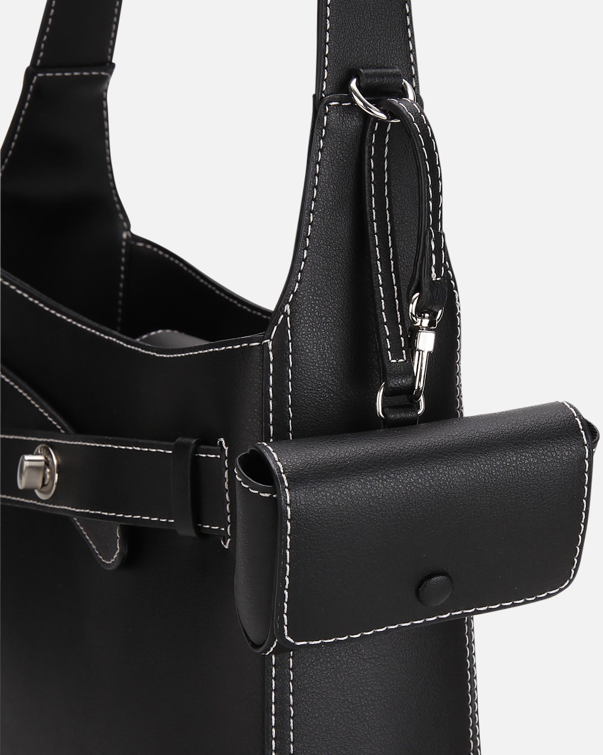 ?Square-shaped crossbody bag crafted from genuine cowhide leather with contrast stitching. Features belted detailing and functional metal hardware engraved with the Kangol logo.?Multiple inner and outer compartments for organized storage. Includes adjustable shoulder strap and?a detachable leather card wallet set.