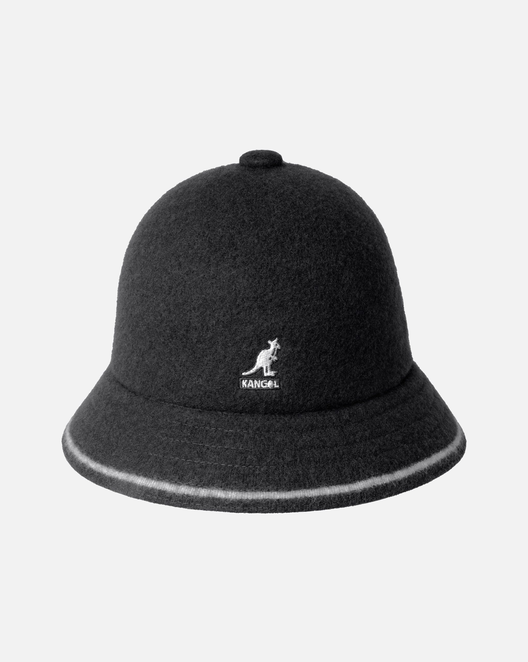 The Stripe Casual is an Iconic style. Crafted from wool. the Stripe Casual features a jacquard stripe around the brim edge. The seamless. knitted & blocked construction is purely a Kangol innovation. The hat is unlined with an embroidered kangaroo logo on the front.