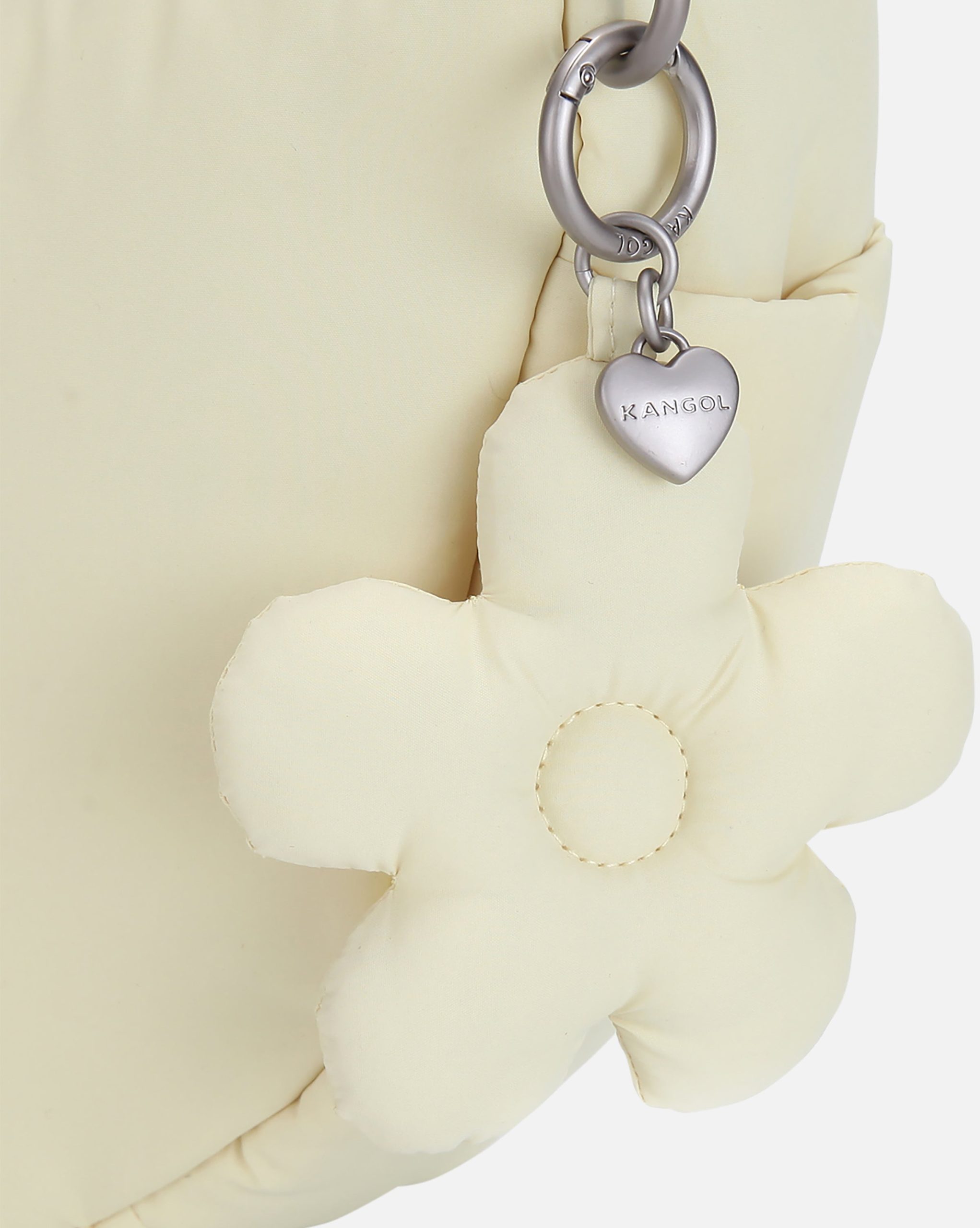 This hobo crossbody bag made from soft puffer fabric and features the signature Kangol logo embroidery on the front.?Adjustable side straps can also be knotted to create a subtle styling accent.?Side pockets allow for quick and easy access to small essentials also comes with a detachable puffer flower-shaped charm set.